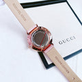 This 32mm Mini Pyper watch features a white sunray dial with rose gold-tone stick indexes, two-hand movement and pink leather strap.