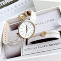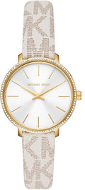 Michael Kors Pyper Quartz Silver Dial White Leather Strap Watch For Women - MK1037Michael Kors Pyper Quartz Silver Dial White Leather Strap Watch For Women - MK1037