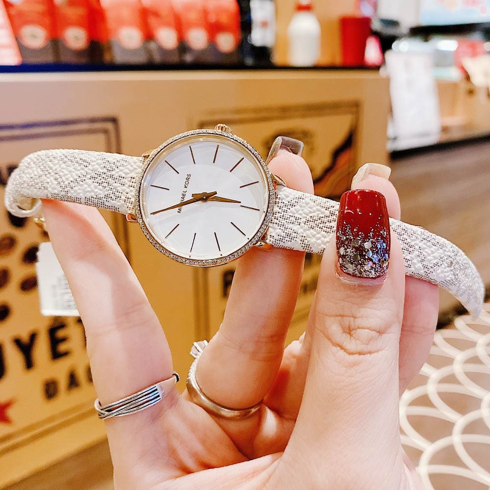 Michael Kors Pyper Quartz Silver Dial White Leather Strap Watch For Women - MK1037
