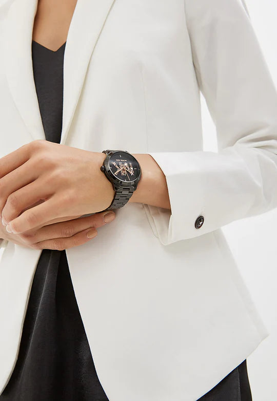 • Band Material-Stainless Steel, Band Color: Black, Case Material-Stainless Steel, Crystal