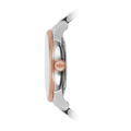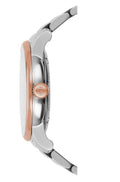 It has a White dial color that complements the overall appearance of the piece. The case that contains the mechanism is PVD-Finished Stainless Steel. The piece is Automatic (Self Winding) movement. It is also water resistant up to 150 Ft (50 Meter). Adorn yourself with this stunning 38mm-case watch. Let its style and functionality speak for you.