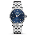 Stainless steel case with a silver-tone stainless steel bracelet. Fixed stainless steel bezel. Blue dial with silver-tone hands with index hour markers. Minute markers around the outer rim. Dial Type: Analog. Date display between the 4 and 5 o'clock positions. ETA Caliber 2824-2 automatic movement with a 40-hour power reserve. Scratch resistant sapphire crystal. Pull / push crown.
