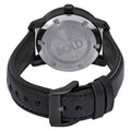 • Black stainless steel case with a black leather strap