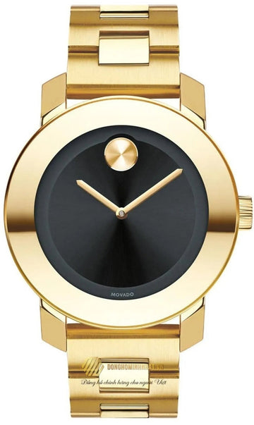 Movado Bold Black Dial Gold Steel Strap Unisex Watch - 3600397