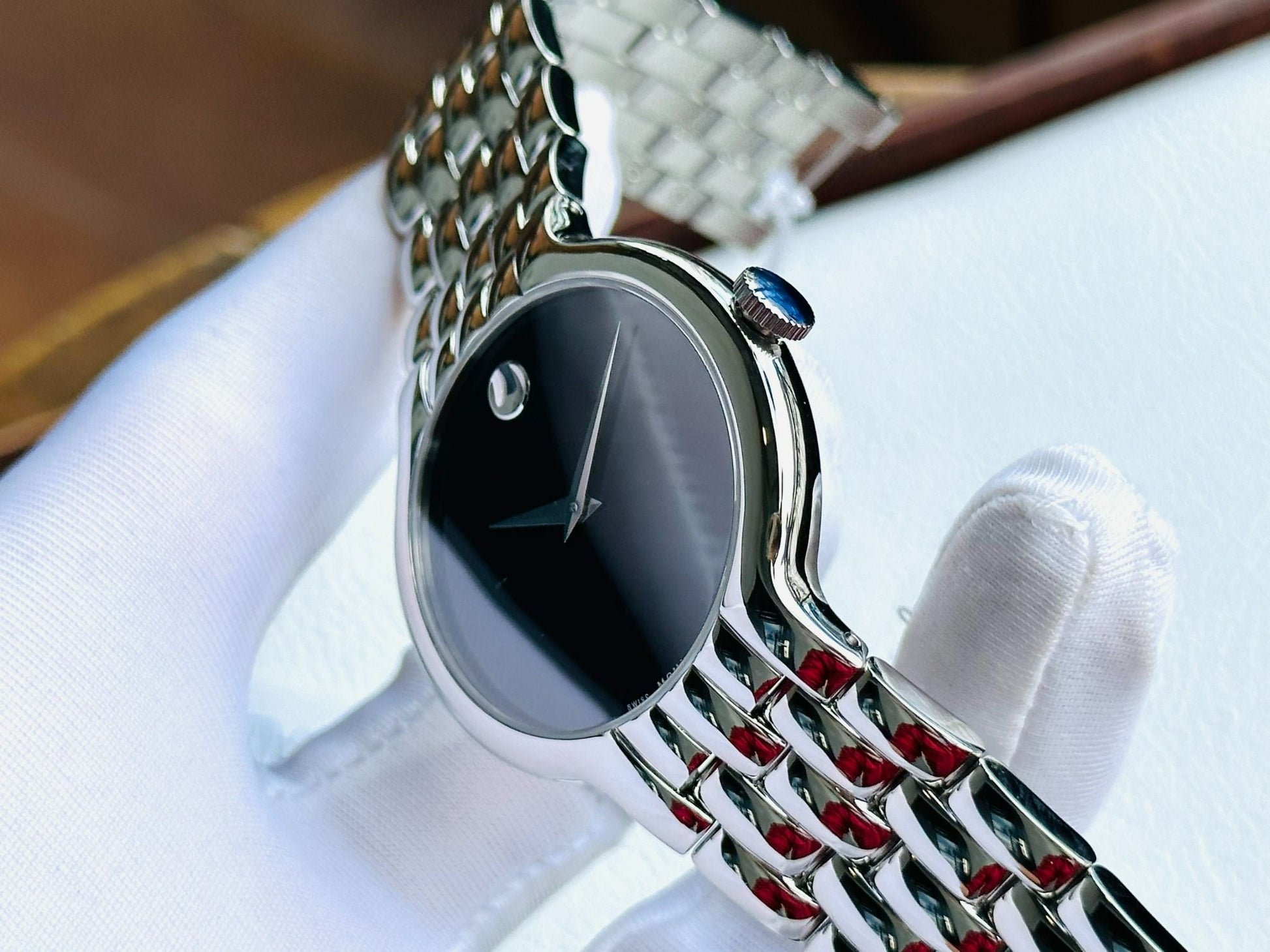 Movado Classic Quartz Black Dial Silver Steel Strap Watch for Men - 0606337Movado Classic Quartz Black Dial Silver Steel Strap Watch for Men - 0606337