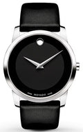 Movado Museum Black Dial Black Leather Strap Watch For Men - 606502