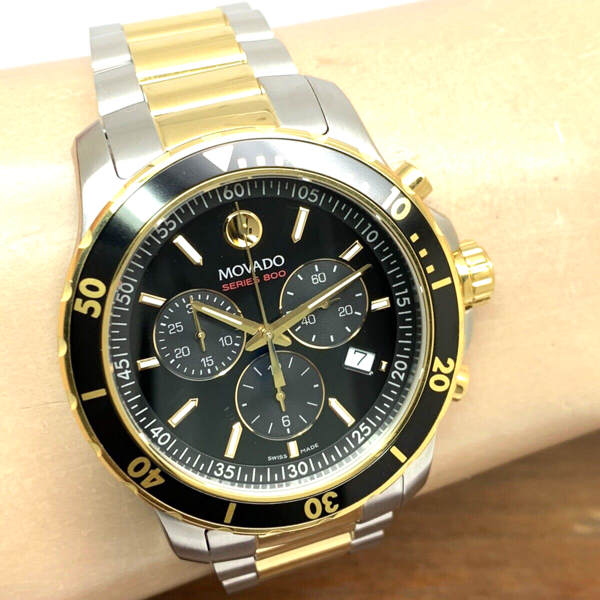 Movado Series 800 Chronograph Black Dial Two Tone Steel Strap Watch For Men - 2600146Movado Series 800 Chronograph Black Dial Two Tone Steel Strap Watch For Men - 2600146