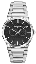 Salvatore Ferragamo Sapphire Bracelet Black Dial Silver Steel Strap Watch For Men - SFHP01124