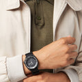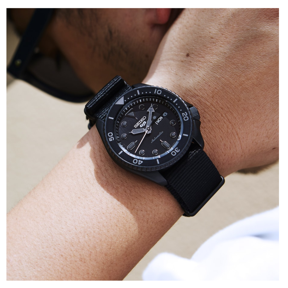 Totally black thanks to the titanium carbonate coating, this Seiko 5 Sports Street watch establishes an indomitable style. This automatic model comes from the desire to produce a casual, urban and sporty watch, but with a century-old manufacturing quality. You can admire the movement through the transparent case back, while the nato strap guarantees comfort that makes it optimal to wear even in the most extreme conditions.