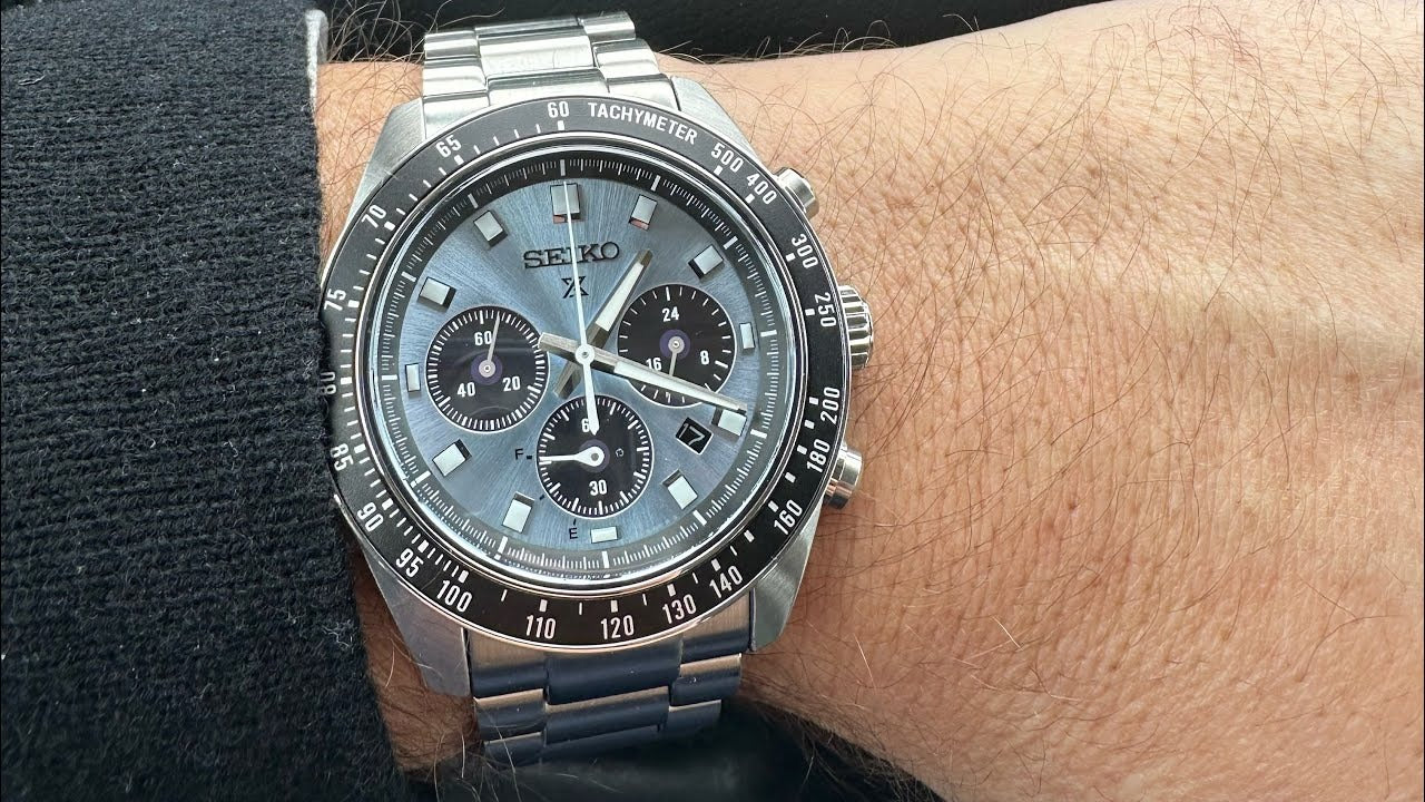 Seiko Speedtimer Solar Chronograph. Designed for those who treat life as the ultimate adventure, Seiko Prospex keeps moving forward, meeting every challenge with technological excellence and winning design. This rugged and stylish watch is part of a high-intensity collection inspired by the 1969 “Speedtimer,” the world’s first self-winding chronograph. This exceptional timepiece offers an enhanced emphasis on usability, legibility and visibility by adding LumiBrite hands and markers, a slightly larger case size and a tapered three-link bracelet.