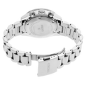 The chronograph function measures up to 60 minutes of elapsed time in 1/5-second increments and includes a split time function, while the solar cell, powered by any light source, with no battery change required, provides a 6-month power reserve when fully charged. Framed by a black tachymeter bezel, the pale blue dial with a brilliant sunray finish features three black subdials, with 24-hour and power reserve indicators, as well as a date calendar and LumiBrite hands and markers. Crafted of stainless steel, with a curved anti-reflective sapphire crystal, this timepiece includes a secure screwdown caseback and tri-fold push button release clasp. 10 bar, 100M Water Resistant