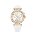 Add brilliance to your look from day to night with Era Journey a chronograph watch with a sophisticated and daring allure. The refined sporty design includes a rose gold:tone coated stainless steel case set with 50 crystals a white sunray dial and a white genuine leather strap. Case: 38 mm. water resistant to 50 meters. Swiss made.