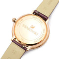• EXCEPTIONAL GLAM. Make a sparkling statement with this extraordinary timepiece, featuring 178 micro-pave crystals on the bezel, a burgundy sunray dial, a rose-gold tone PVD stainless steel case, and a burgundy leather strap. Full of signature Swarovski sparkle and ideal for everyday wear. Case - 34 mm; water resistant to 50 m; K1 Mineral Glass; Swiss Made.