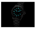 A versatile watch for casual and more dressy occasions, but also a robust sports watch water resistant to 300 meters, equipped with a unidirectional rotating bezel and a screwed-down crown.