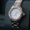 Tag Heuer Aquaracer Diamonds Mother of Pearl White Dial Silver Steel Strap Watch for Women - WBD1413.BA0741