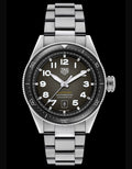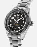 Pairing a 42mm steel case with a smoked black ceramic bezel and a steel bracelet, this high performance model is inspired by the brand’s mid-century pilot watches.