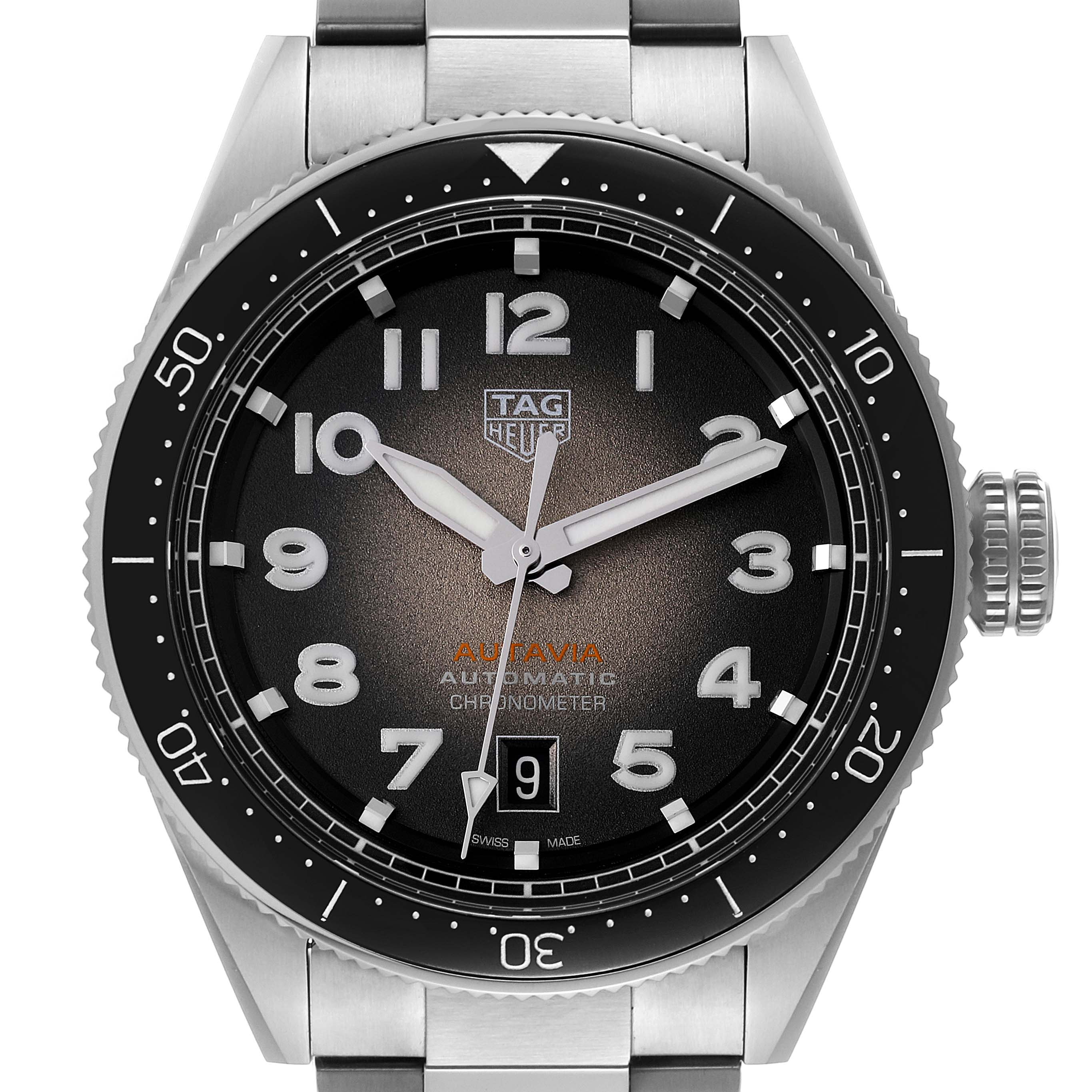 Ease of use and optimal legibility inform the Autavia dial and case design. The numerals and hands are coated with white Super-LumiNova®. The turning bezel is bidirectional.