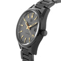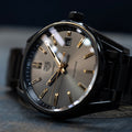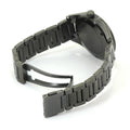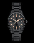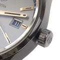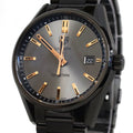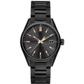 Black PVD steel case with a black PVD steel bracelet. Fixed black PVD steel bezel. Black dial with luminous rose gold-tone hands and index hour markers. Minute markers around the outer rim. Dial Type: Analog. Luminescent hands and markers. Date display at the 3 o'clock position. Quartz movement. Scratch resistant sapphire crystal. Push / pull clasp. Solid case back. Round case shape. Case size: 39 mm. Deployment clasp. Water resistant at 100 meters / 330 feet. Functions: date, hour, minute, second. Casual watch style. Watch label: Swiss Made. Tag Heuer Carrera Black PVD Black Dial 39 mm Watch WAR1113.BA0602.