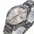 Brand New Authentic Tag Heuer Carrera Quartz Special Edition Black Titanium Women's Watch Model WAR1113.BA0602. Black Titanium Carbide Coated Stainless Steel case with Black Titanium watch band. Deployment clasp. Fixed bezel. Dial description: Rose Gold plated hands and Index hour markers with minute markers around the outer rim on a Anthracite Grey dial. Quartz movement. Powered by Tag Heuer Quartz engine. Watch functions: Date, Hour, Minute, Second. Pull/Push crown. Scratch Resistant Sapphire crystal. Round case shape. Case size: 39mm. Solid case back. 100 Meters - 330 Feet water resistant. 2 year warranty.