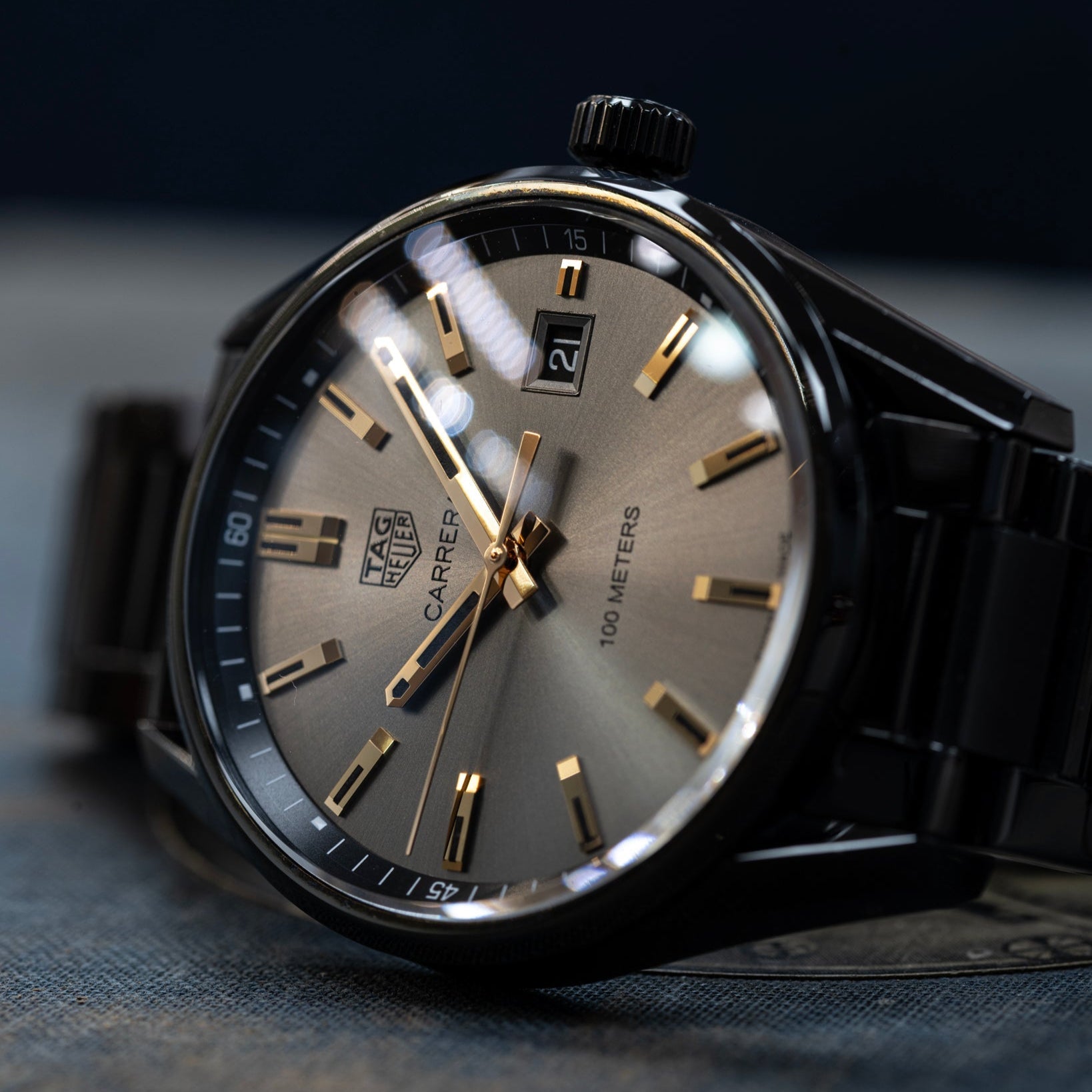 Swiss-made, this elegant TAG Heuer Carrera is an aesthetic 39 mm watch. This model features a Steel Black PVD case and a Quartz movement.