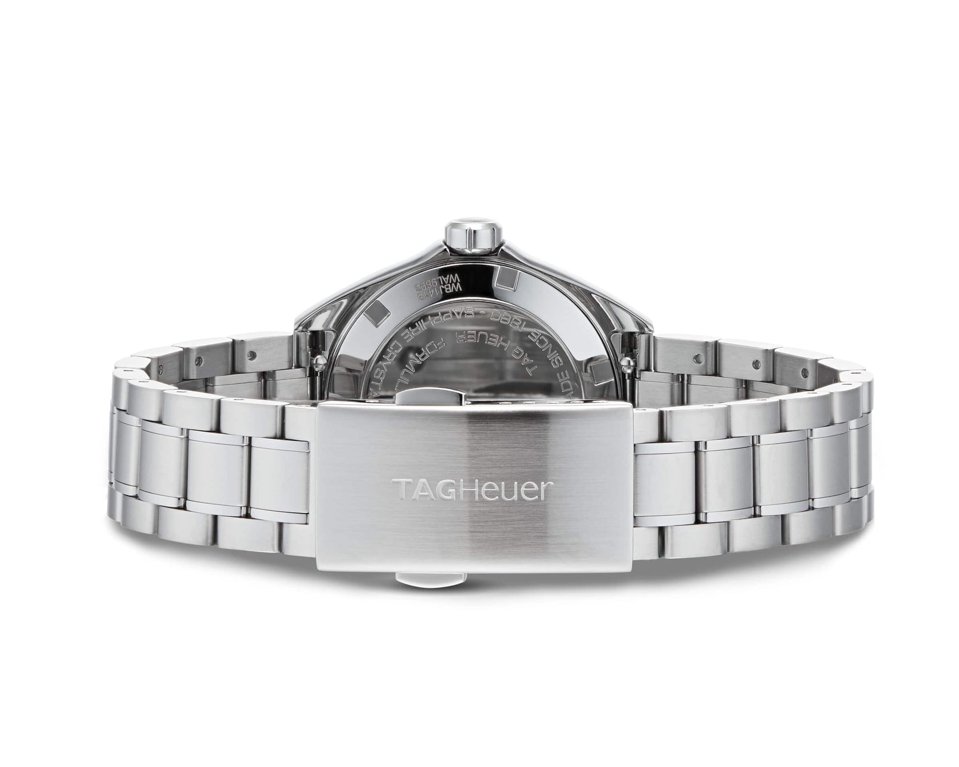Silver-toned hands and a silver, hand-polished TAG HEUER shield heighten the luminous values of the mother-of-pearl dial. Stylish and chic yet driven by performance: water-resistance is guaranteed to 100 meters.