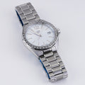 Characterised by its stunning white mother-of-pearl dial and striking bezel set with 36 glistening diamonds, this TAG Heuer Formula 1 watch is truly striking.
