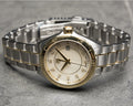 Stainless steel bracelet and case, steel bezel, scratch-resistant sapphire crystal, date window at 3’o clock, quartz-movement