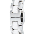 Instantly noticeable, the striking white dial of this TAG Heuer Formula 1 Ladies watch is decorated with the brand’s famous logo at 12 o clock, faceted indexes and sleek steel hands. The neatly sized 32mm fine brushed and polished stainless steel case is water resistant to 100 metres and moulds elegantly to the wrist thanks to the sleek lugs and sophisticated two toned white ceramic and stainless steel bracelet.