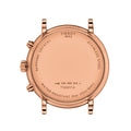The Tissot T122.417.36.011.00 Carson watch from the T-Classic collection combines a 41mm round shaped stainless steel case with rose gold PVD coating case and brown croc-scale embossed leather strap with a traditional buckle. It has a white analogue dial which is protected beneath sapphire crystal glass. Power is generated by a 13 1/4" Swiss quartz EOL movement with a Renata 394 battery. This model also has a water resistance of up to 50 metres.