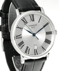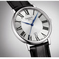 The Tissot Carson Premium belongs in any time and place. Offering a touch of sophistication while remaining classic and modern with its slim, curved hands and slender Roman numeral indices on the dial. Made with a new generation of Swiss quartz movement, F0X heavydrive. Available in two sizes, the Tissot Carson can be enjoyed by men as well as women.
