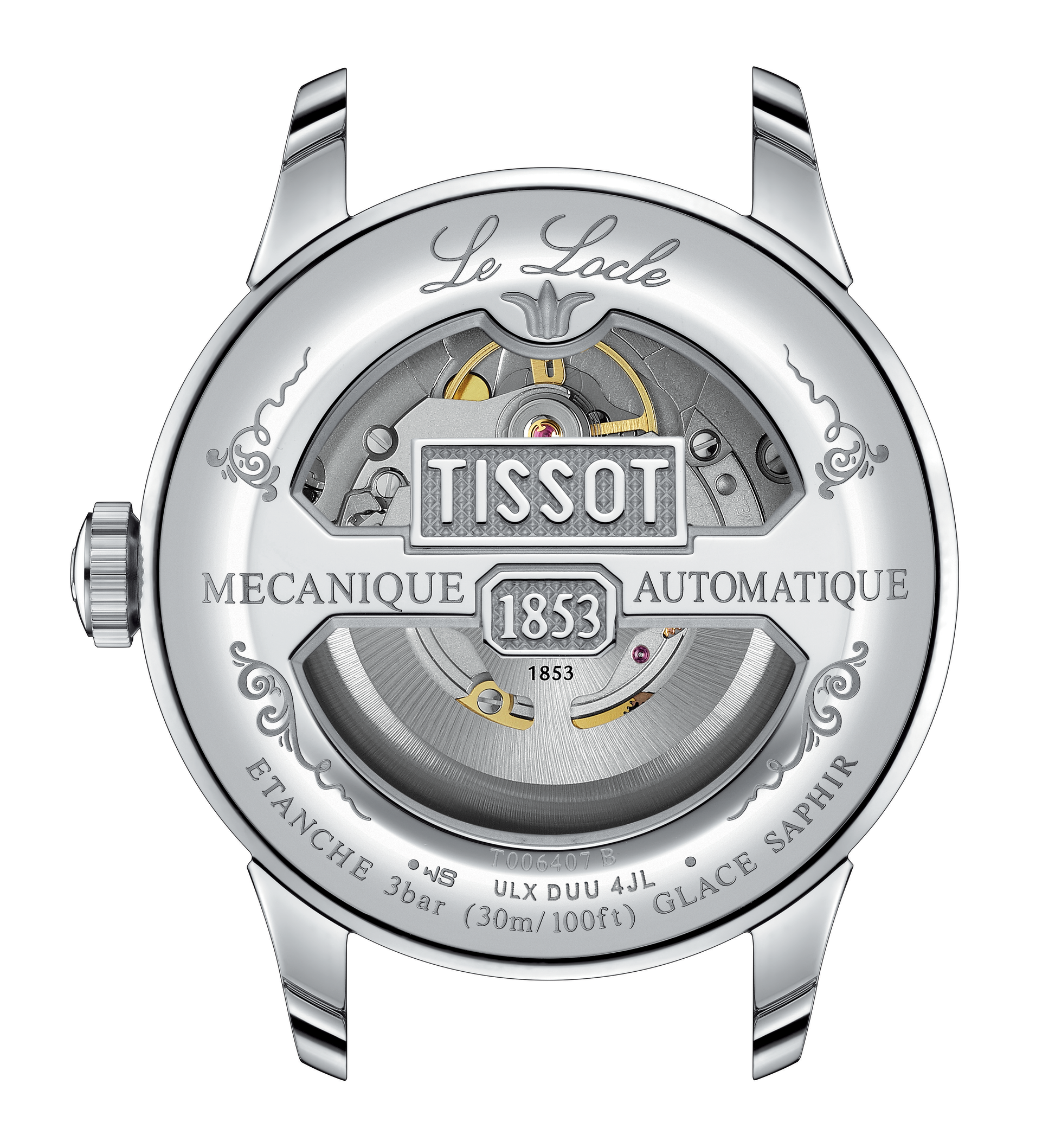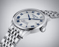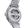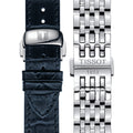 With a 39.3 millimeter 316L stainless steel case, this elegant watch features a Powermatic movement with a Nivachron balance spring resistant to magnetic fields, and a power reserve of up to 80 hours. Its tireless work can be observed through the case’s transparent caseback. The Tissot Le Locle Powermatic 80 comes with two bracelets that can be exchanged easily and without tools thanks to a quick-change system: a 316L stainless steel bracelet and a dark blue leather strap.