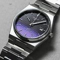 This 40mm extension of the PRX Powermatic 80 showcases a captivating gradient dial that shifts with light and color, creating a visually stunning effect. This vibrant color scheme breaks free from the ordinary, evoking the mesmerizing hues of dusk and dawn. Ideal for those setting out to conquer new horizons, this PRX model is the perfect blend of sophistication and functionality for urban professionals who value both style and substance.
