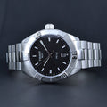 Crafted with precision and quality, this watch features a durable stainless steel case and bracelet that can withstand the wear and tear of daily use. The black dial is accented with luminous hands and markers for easy readability, even in low light conditions.