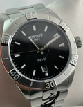 Tissot T101.610.11.051.00 PR 100 Men’s Watch. The case is made out of silver stainless steel with a silver bezel, which stands for the high quality of the item, it has a black dial. This model has got 100 meters of water resistance. it can be worn in scenarios where it is likely to be splashed but not immersed in water and will be fine in rain. The watch is shipped with an original box and a guarantee from the manufacturer