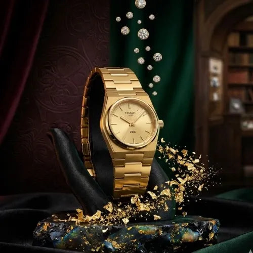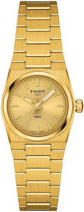 The Tissot PRX 25mm combines timeless elegance with modern design, featuring a stunning gold dial that catches the light beautifully. The matching gold steel strap offers durability and sophistication, making it an ideal everyday luxury watch for women. With Tissot's renowned Swiss craftsmanship and precision engineering, this timepiece delivers reliability you can trust. The compact 25mm case size ensures a comfortable fit while maintaining a bold presence on the wrist. Perfect for both professional settings and casual occasions, the PRX is a versatile addition to any watch collection.