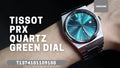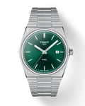 Tissot PRX quartz mens watch T1374101109100. Stainless steel case and bracelet with green dial. Quartz movement. Case size 40mm. Water resistance upto 100 meters. Scratch resistant sapphire crystal. Interchangeable quick release bracelet, butterfly clasp with push buttons.