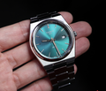 Introducing the Tissot PRX Green Dial Silver Steel Strap Watch for Men. With its sleek design and durable steel strap, this watch is perfect for any occasion. The green dial adds a pop of color, while the Tissot brand ensures quality and precision. Upgrade your style and timekeeping with this expertly crafted timepiece.