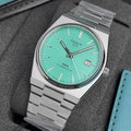 Discover timeless elegance with the Tissot PRX Powermatic 80 Automatic Watch. Featuring a striking mint green dial and a durable silver steel strap, this watch elevates any outfit. Equipped with the innovative Powermatic 80 movement, it offers reliable accuracy and a power reserve of up to 80 hours. Embrace luxury and precision in one stunning timepiece.