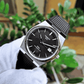 Black dial with silver-tone hands and index hour markers.