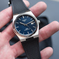 Discover this new version of the PRX Powermatic 80 with a discreet black guilloche dial in a 40 mm case. You will appreciate its black rubber strap