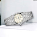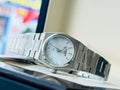 This PRX 25mm version features a white mother-of-pearl dial. The solid yet flexible 316L stainless steel bracelet with a butterfly clasp with pushers keeps the watch securely on your wrist.