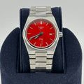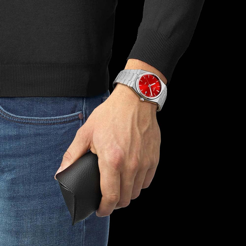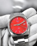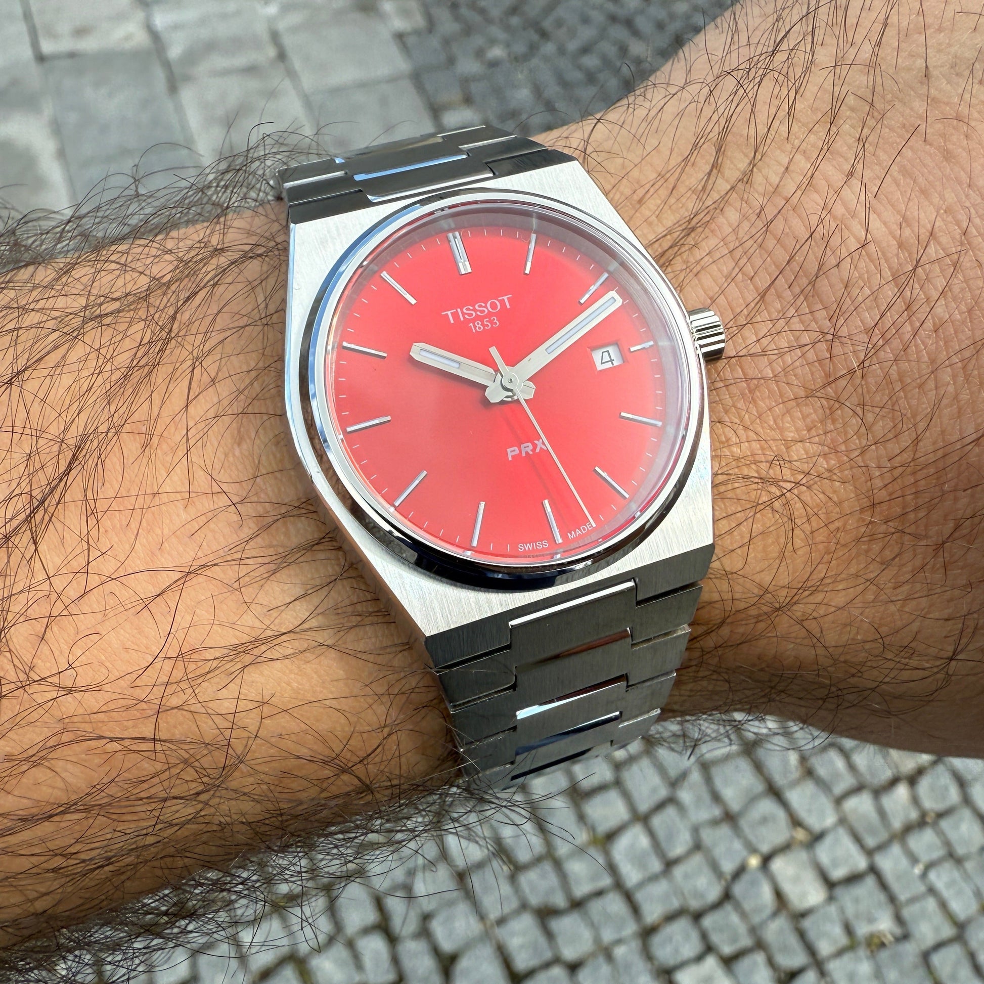 A renowned Tissot product line with a unique and impressive design from the late 1970s, a design that even luxury watch brands like Audemars Piguet still use today. The newly released red dial version is unique and combines polished steel hands and markers that catch the light well.