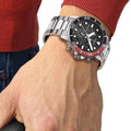 Tissot T120.417.11.051.01 Seastar 1000 Men Watch. The case is made out of silver stainless steel with a black and red bezel, which stands for the high quality of the item, it has a black color dial. This model has got 300 meters of water resistance. it can be worn in scenarios where it is likely to be splashed but not immersed in water and will be fine in rain. The watch is shipped with an original box and a guarantee from the manufacturer.