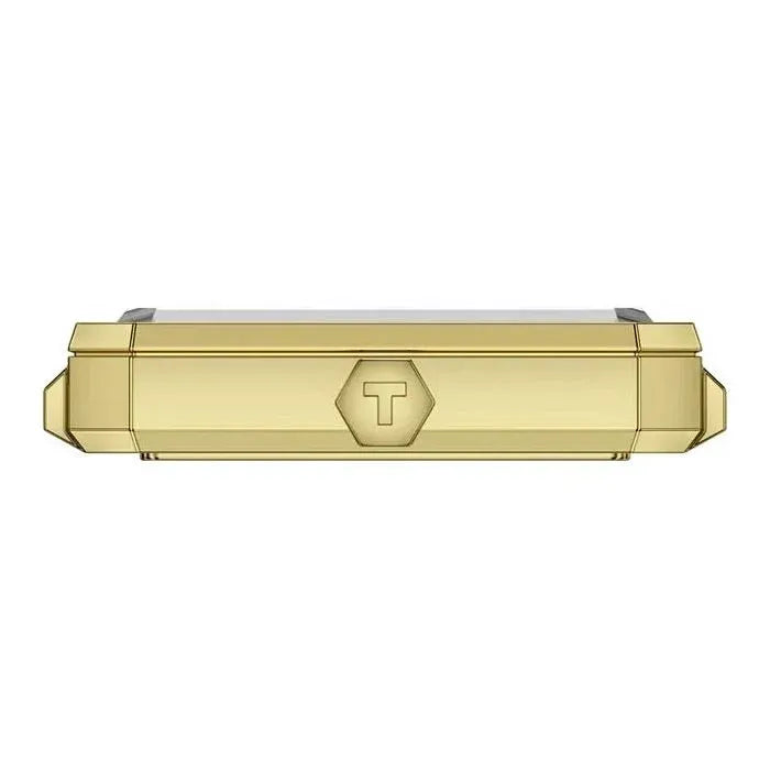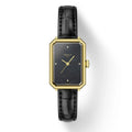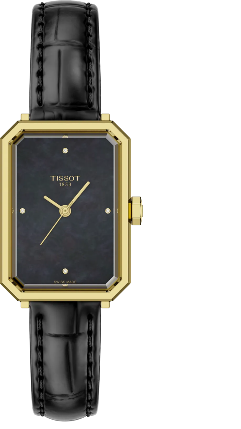 Celebrating a century of Art Deco design, the Tissot SRV Ladies Watch blends vintage sophistication with modern elegance. Inspired by Tissot’s 1920s archives, it features a sleek angular yellow gold PVD plated stainless steel case, a captivating black mother-of-pearl dial, and a classic black leather strap. Diamond hour markers at 12, 3, 6, and 9 o’clock add a touch of refined luxury, while a hexagonal crown enhances its geometric character. Powered by a precise quartz movement with an end-of-life indicator, this watch is a timeless tribute to bold design and enduring style.