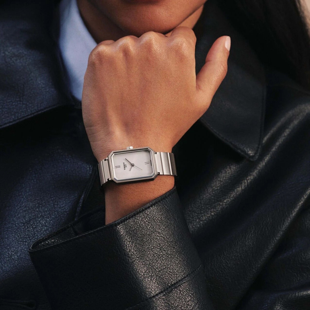 R stands for “Rectangle”, describing the distinctive rectangular case shape reminiscent of iconic Tissot models from 1975. The third letter, V, represents the Roman numeral five, symbolizing that all watches within this collection feature 5 ATM water resistance. This is a timepiece that takes you back in time and reminds you of the true value of enduring design.
