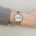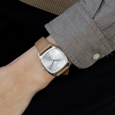 A perfect combination of vintage charm and modern sophistication. Featuring a sleek stainless steel case and a refined grey dial, this timepiece embodies timeless elegance. The minimalist design is complemented by slim hands and indices, offering a clean and classic aesthetic. A rich brown leather strap adds warmth and versatility, making it an ideal accessory for any occasion.