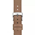 • Band Material: Genuine Leather, Band Color:Light Brown, Bezel Material: Stainless Steel, Bezel Color: Silver Tone, Band Width:18mm.