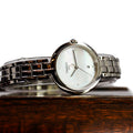 Elevate your everyday elegance with the Tissot T-Lady Flamingo, a sophisticated timepiece designed for the modern woman. This stunning watch features a delicate mother-of-pearl dial that catches the light beautifully, complemented by sparkling diamond hour markers that add a touch of luxury. The polished silver steel case and matching bracelet create a timeless aesthetic that transitions seamlessly from office to evening. The refined 30mm case size sits comfortably on the wrist, while the quartz movement ensures reliable, accurate timekeeping. Water-resistant to 30 meters, this Swiss-made watch combines classic femininity with practical durability. Perfect for those who appreciate fine craftsmanship and understated glamour, the Tissot T-Lady Flamingo is an investment piece that will remain a cherished accessory for years to come.