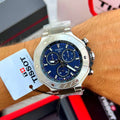 Experience the perfect fusion of style and functionality with the Tissot T Race Chronograph Blue Dial Silver Steel Strap Watch for Men. This timepiece features a striking blue dial with a chronograph and a silver steel strap, making it a must-have for any modern man. Elevate your look and stay on time with Tissot.