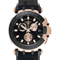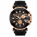 Elevate your style with the Tissot T Race Chronograph watch. Its black dial and silicone strap exude confidence and sophistication, while its precise chronograph and sleek design make it a perfect accessory for any occasion. With its expert craftsmanship and durability, this watch is a must-have for any man seeking a timeless and functional timepiece.